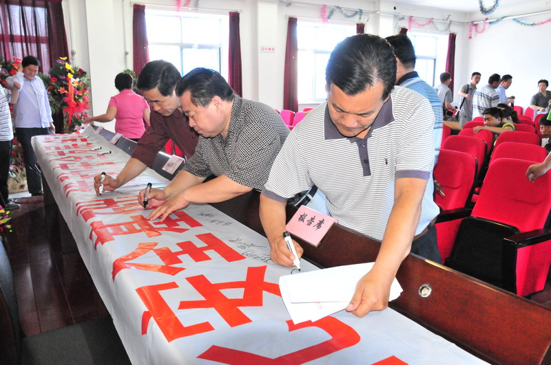 參會人員在“強(qiáng)化安全基礎(chǔ),推動安全發(fā)展,全面推行標(biāo)準(zhǔn)化”條幅上簽字