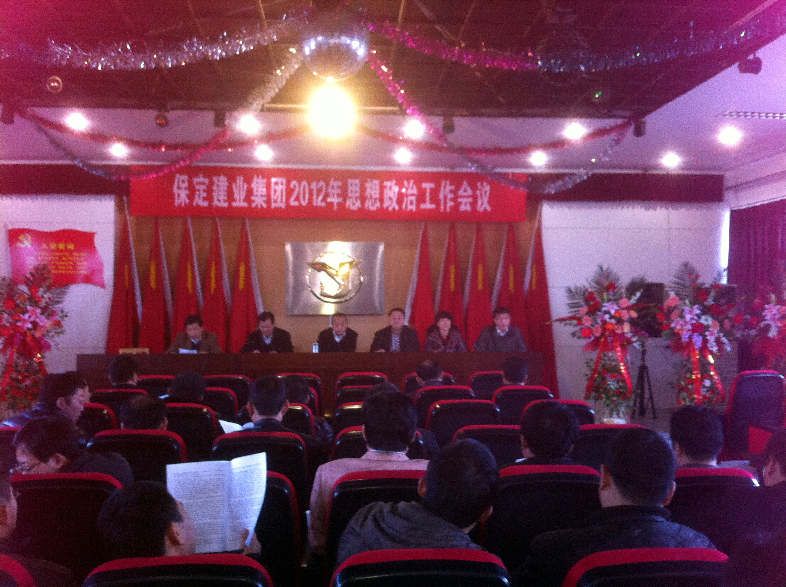 2012年3月14日,保定建業(yè)集團(tuán)有限公司2012年思想政治工作會(huì)議在莊嚴(yán)的國(guó)歌聲中拉開(kāi)了序幕,會(huì)議由黨委辦公室主任馬亞軍主持,集團(tuán)各公司黨、政、工、團(tuán)、婦、武裝、保衛(wèi)負(fù)責(zé)人參加會(huì)議。
